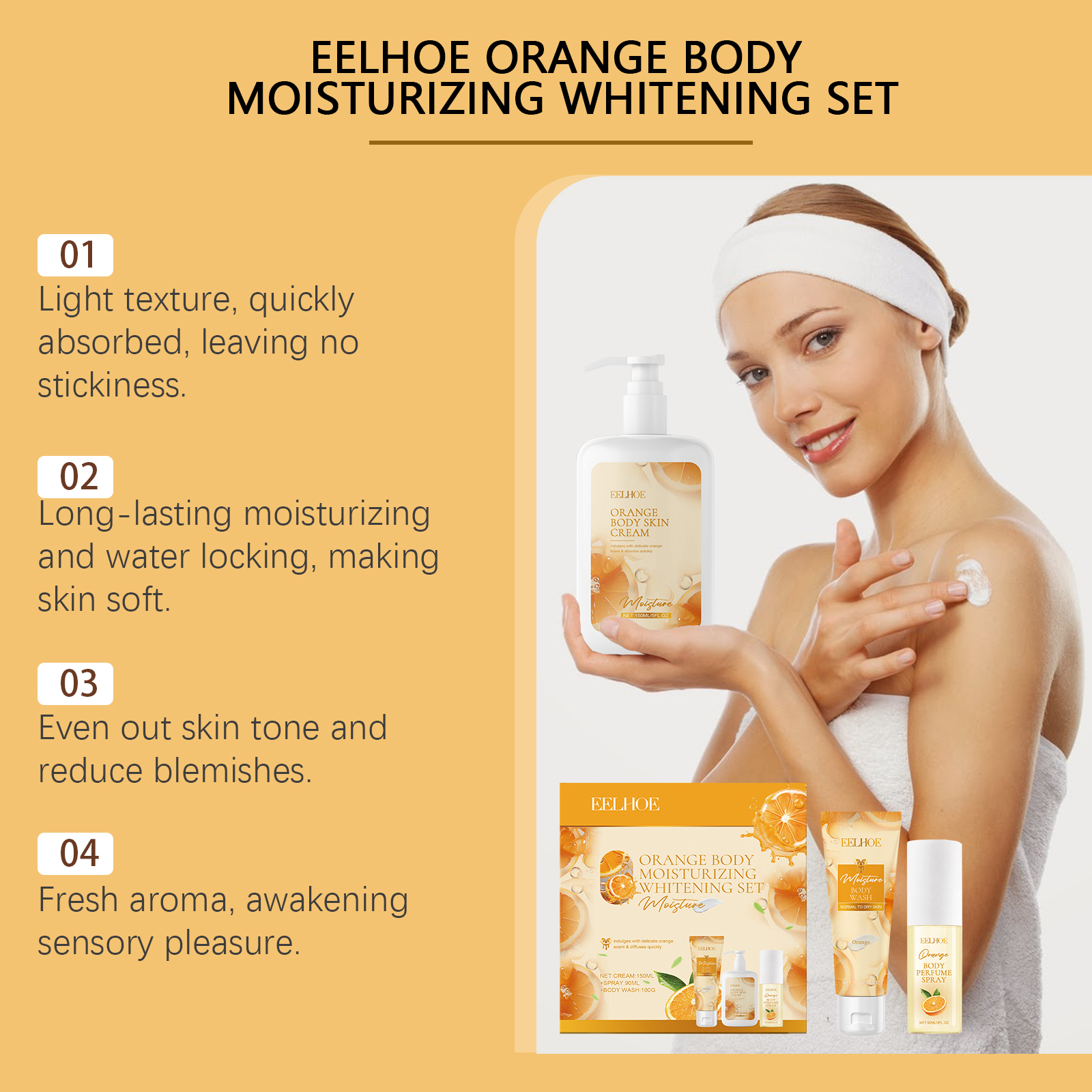EELHOE Orange Body Moisturizing and Whitening Fragrance Gift Set - Gentle Moisturizing and Hydrating Skincare Set