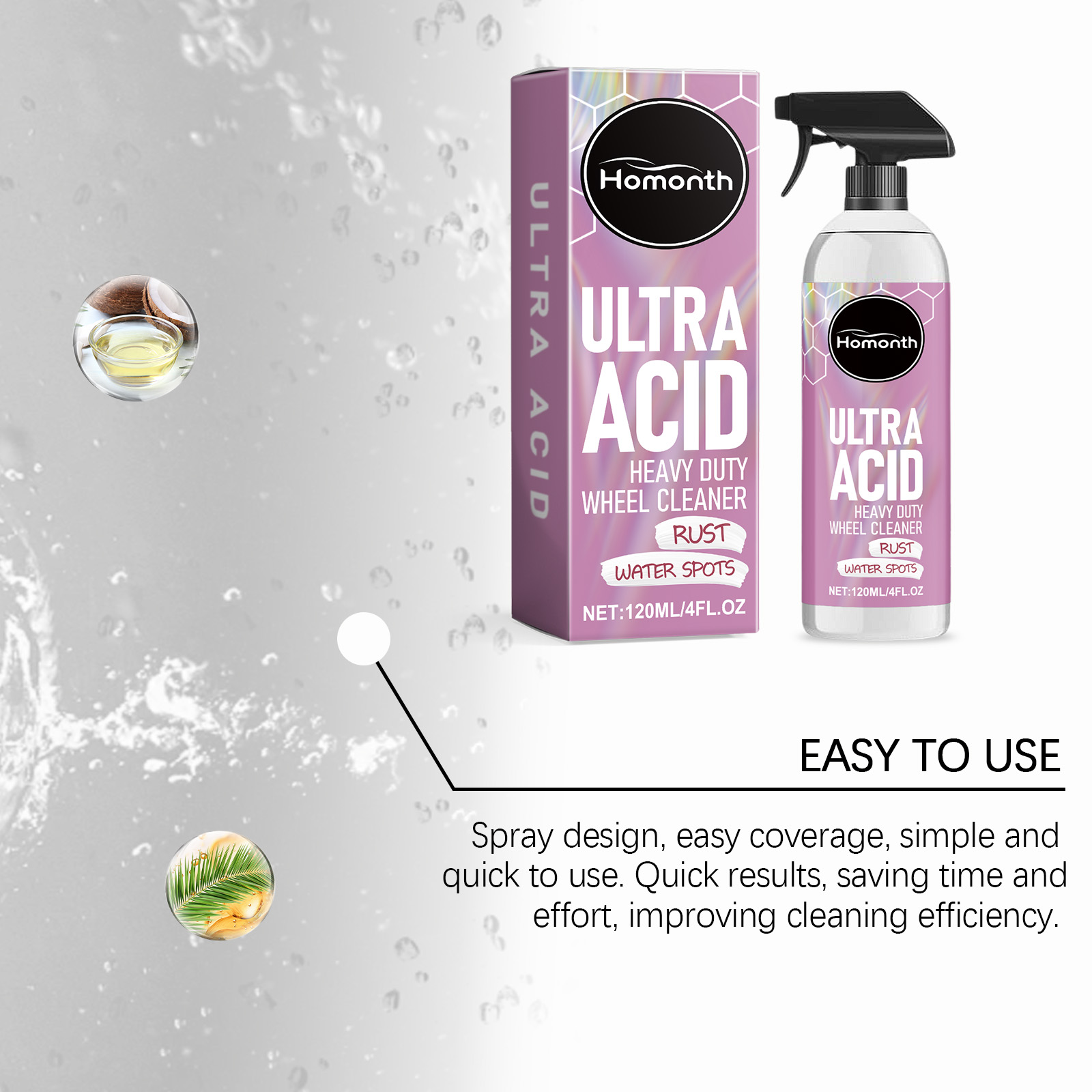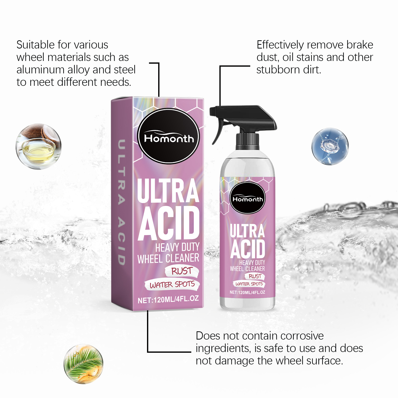 Homonth Heavy Duty Wheel Cleaner - Heavy Duty Wheel Cleaning, Stain Removal, Anti-aging, Dust Repellent Foam Cleaner