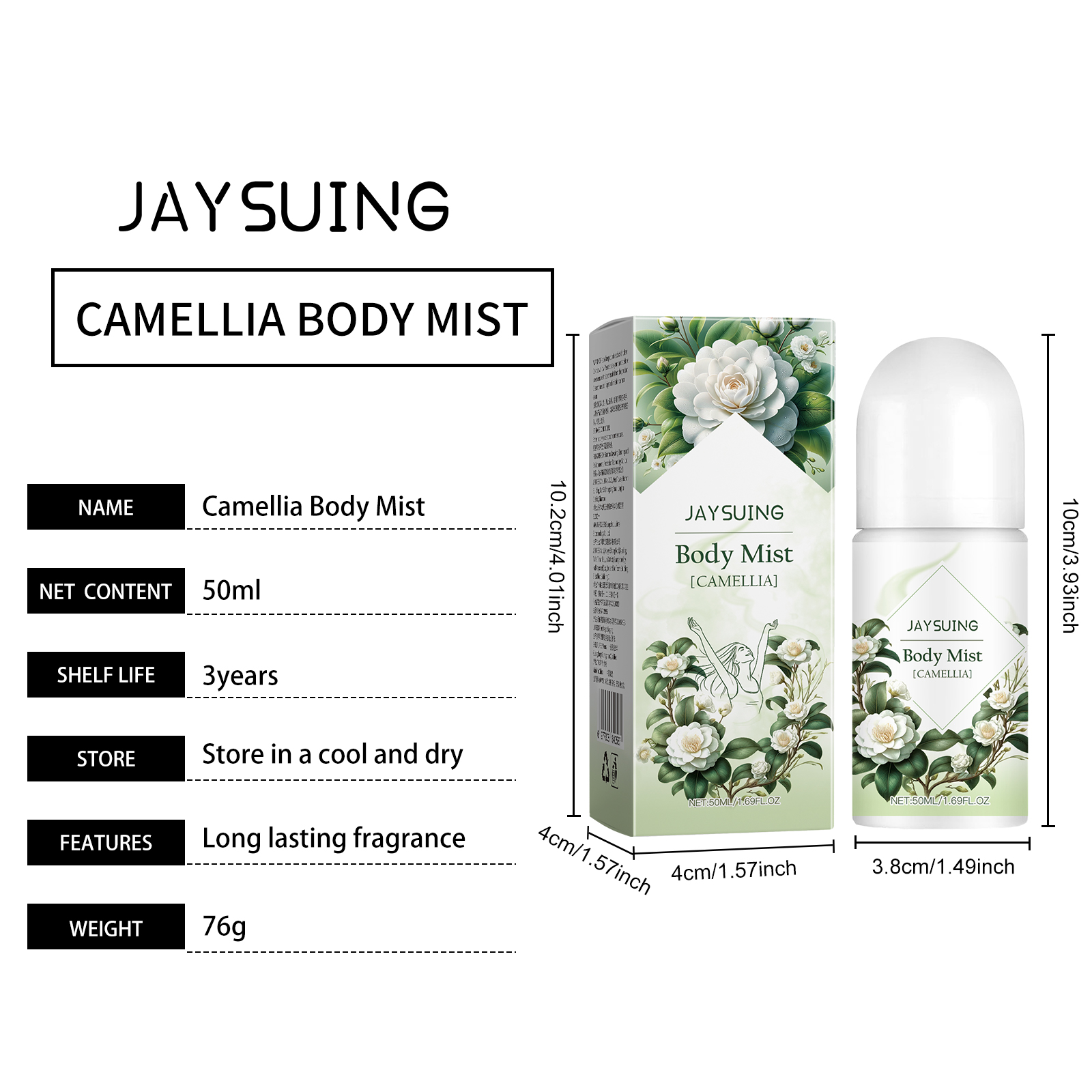 Jaysuing Camellia Body Lotion Refreshing Body Care Long-Lasting Fragrance Roll-On