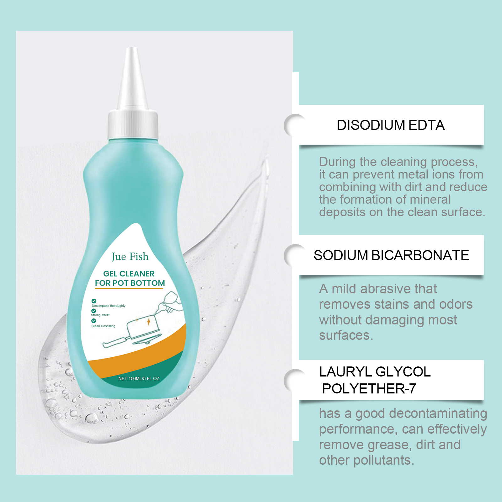 Jue-Fish kitchen cleaner stove range hood pot cleaning oil stains pot bottom black dirt cleaner