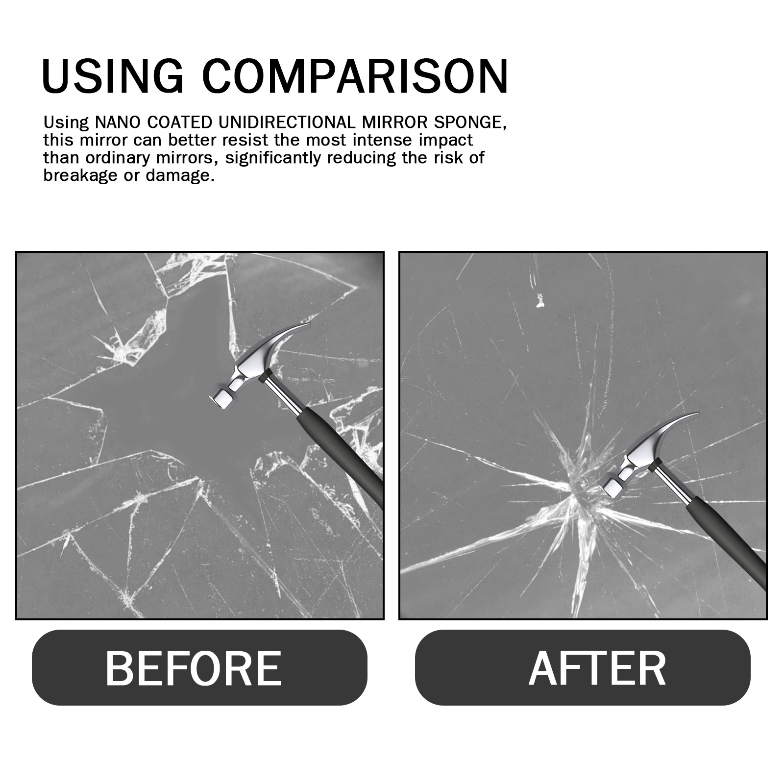 Our mirror sponge contains PET. It can better withstand the strongest impacts than ordinary mirrors, significantly reducing the risk of breakage or damage. Its usage is simple: clean dust or debris from the glass surface. Open the lid, apply the sponge to the glass surface, gently wipe, wait 5-10 minutes, and then wipe clean with a dry cloth. After use, looking through the glass, you will not be able to clearly see what is inside, creating a one-way glass effect.