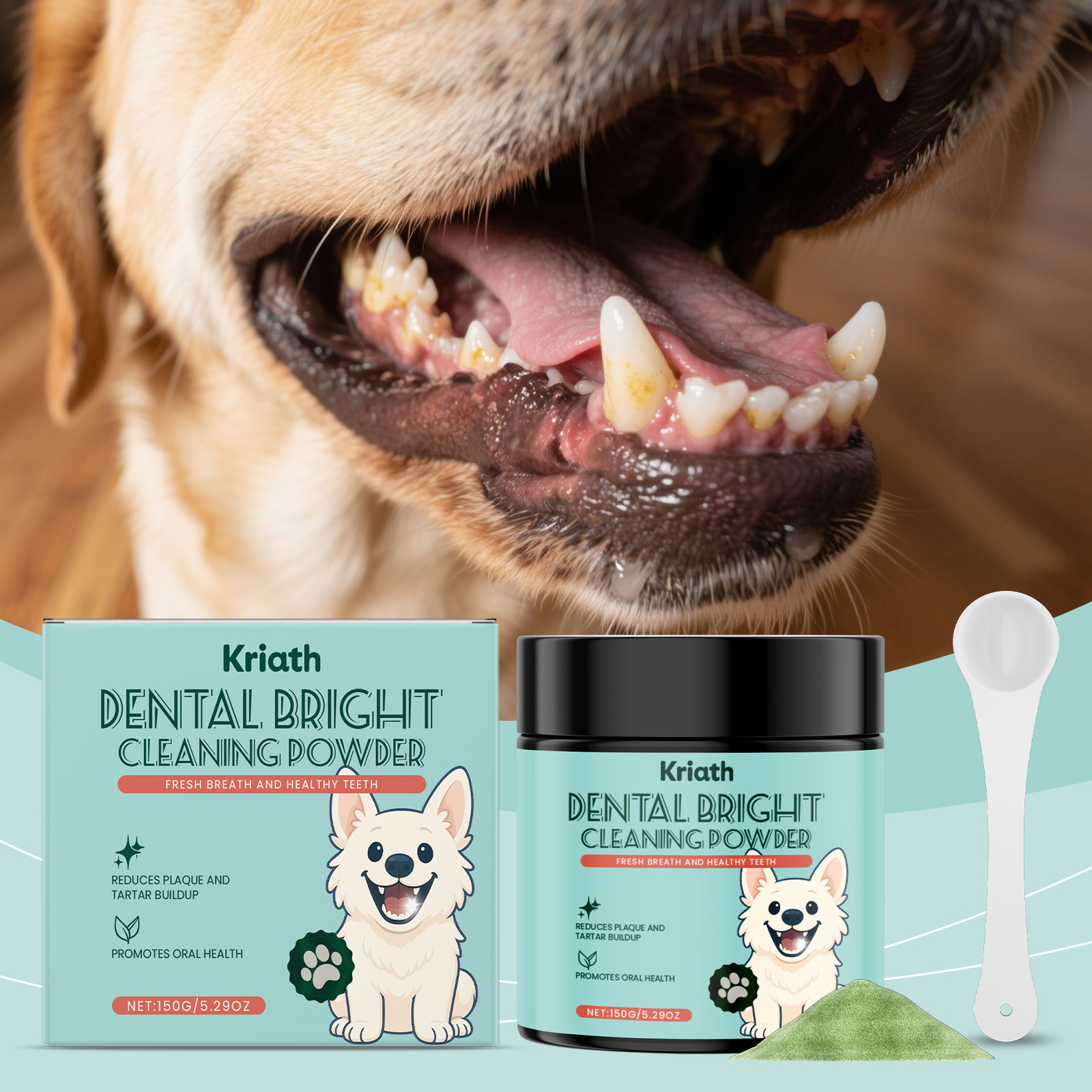 Kriath Dog Dental Cleaning Powder: Gentle formula for fresh, clean teeth, daily dog dental care product.