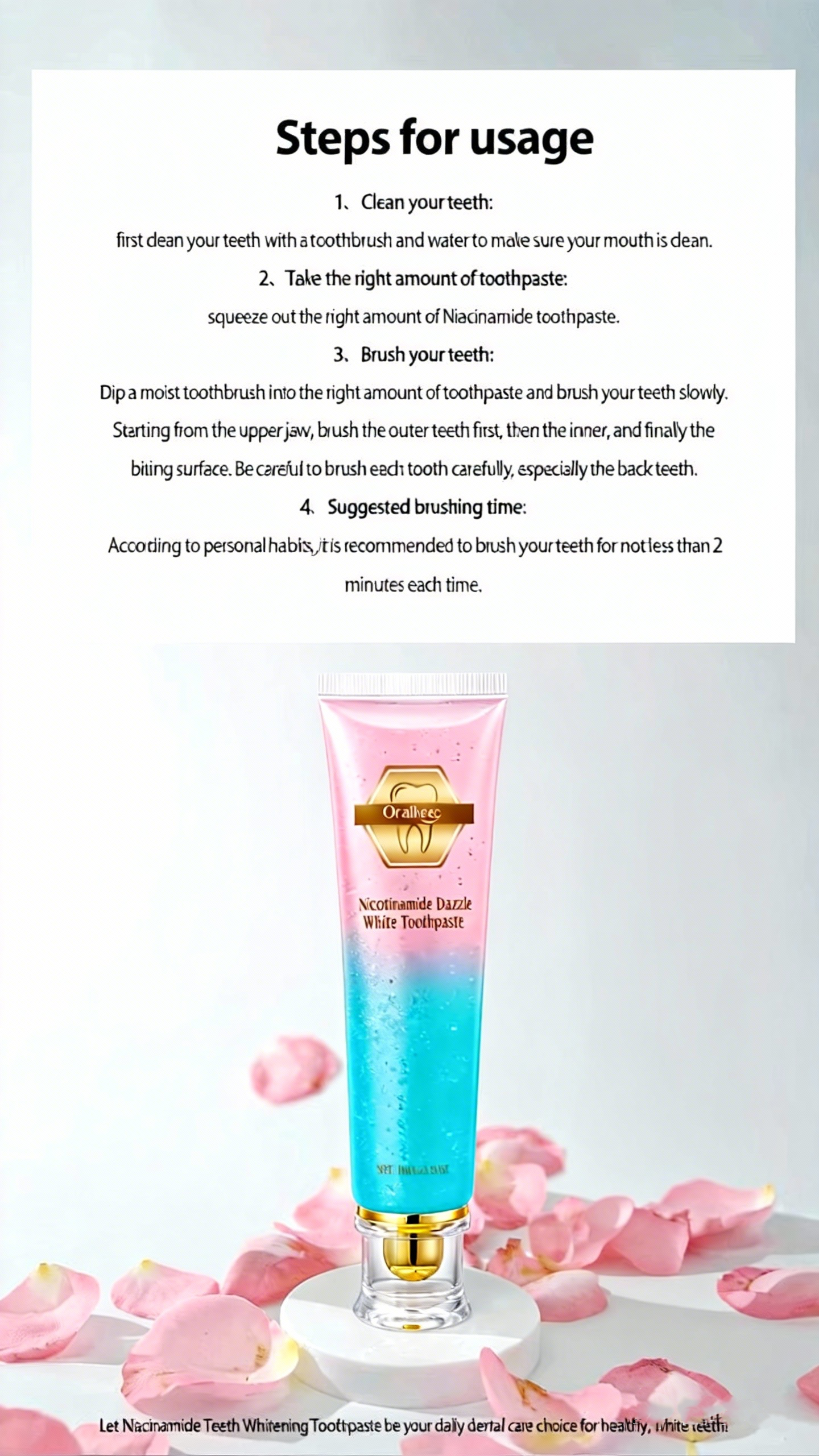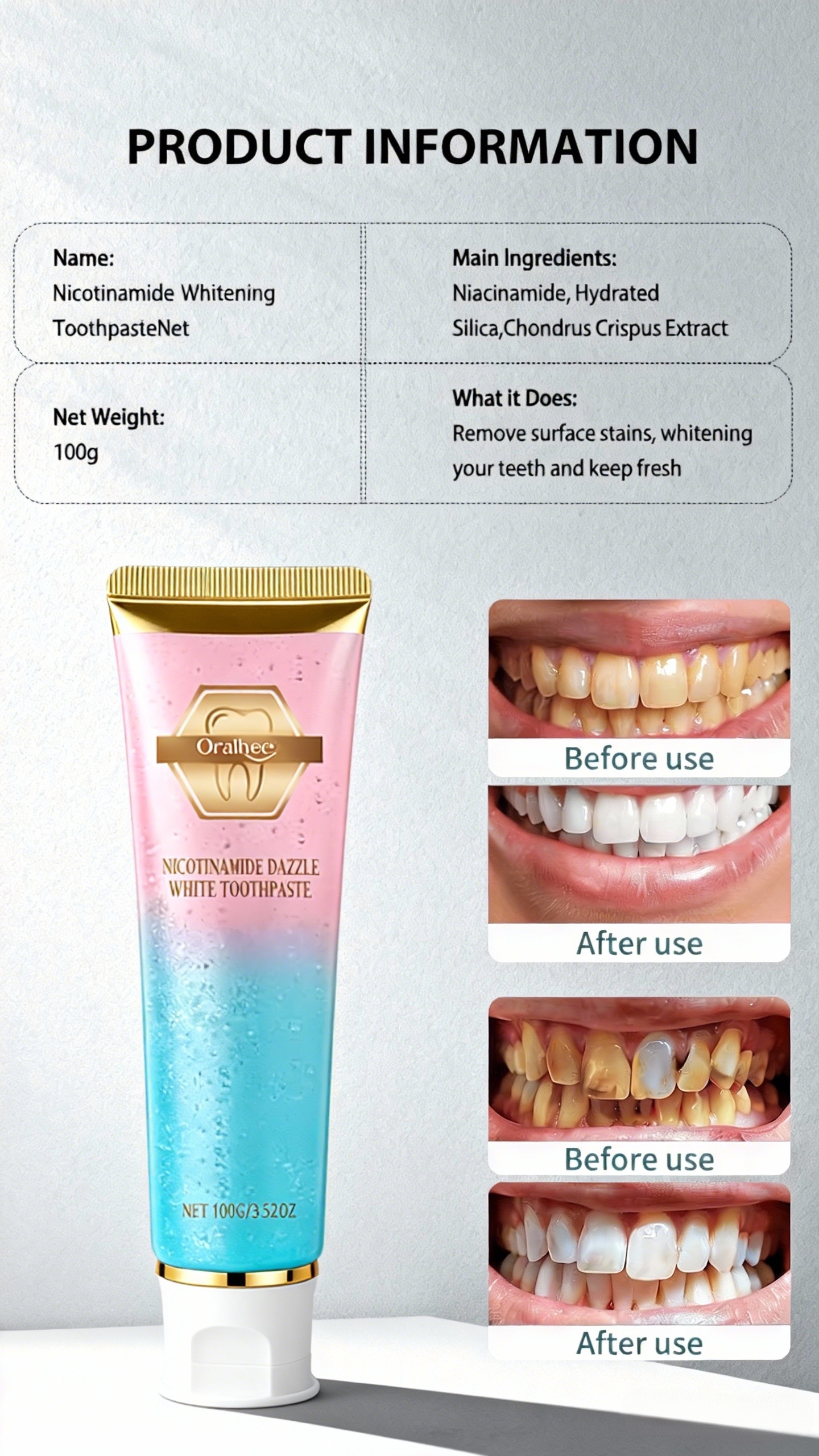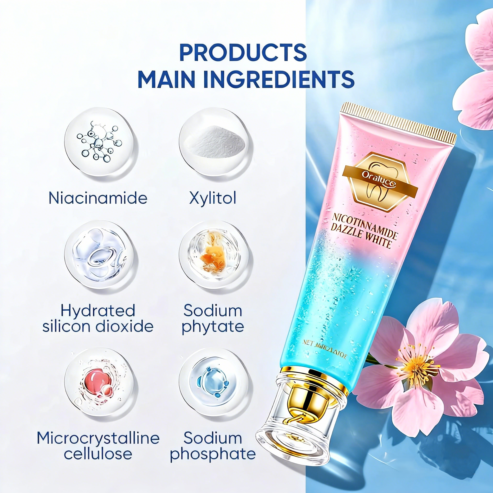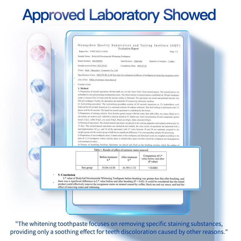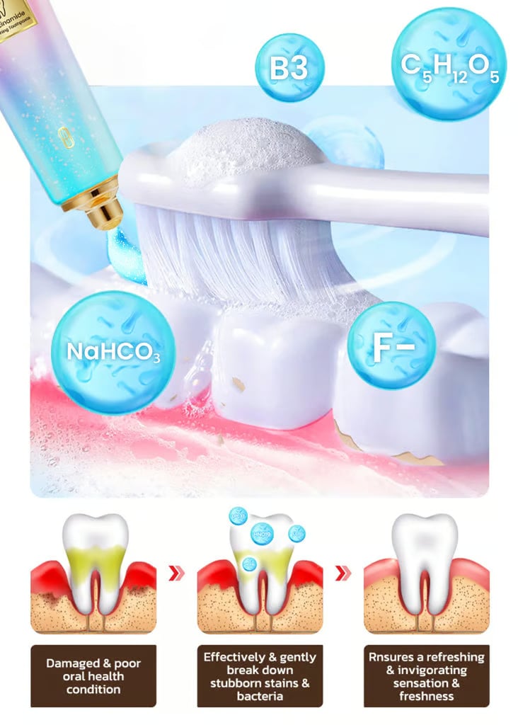 Niacinamide Whitening Toothpaste The toothpaste contains natural particles: