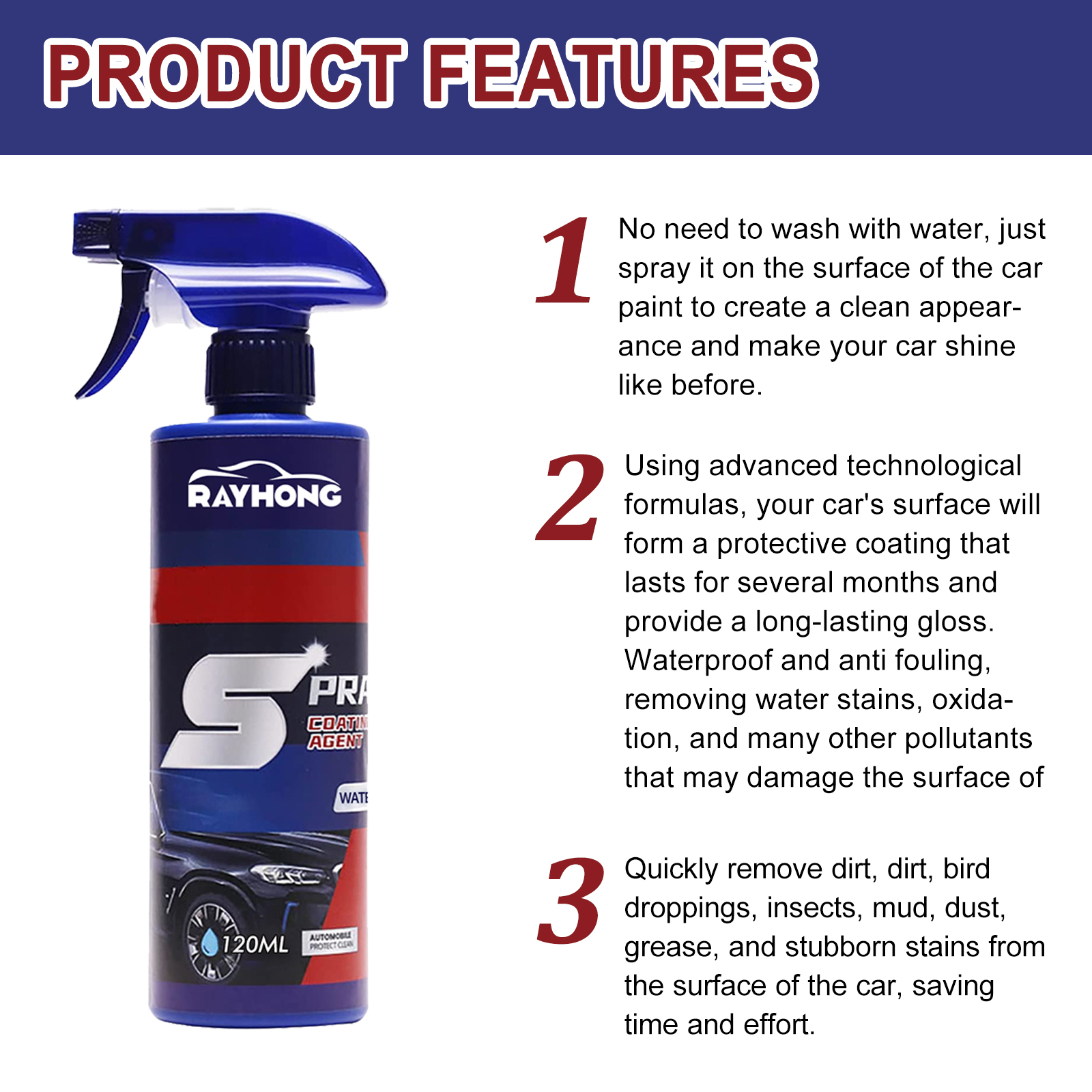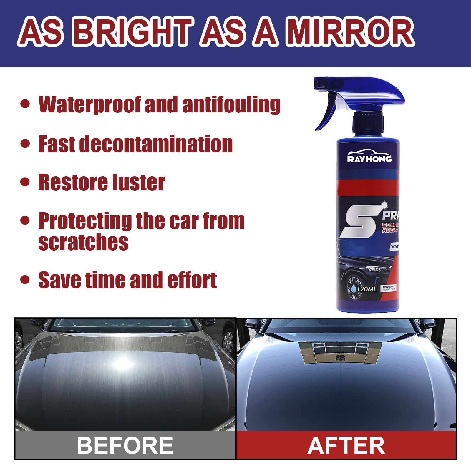 Rayhong car coating spray car paint maintenance paint surface decontamination brightening nano coating spray coating agent