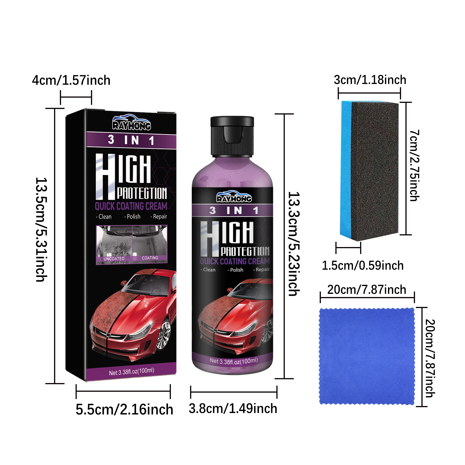 Rayhong coating cream 3 in 1 car cleaning, decontamination, scratch repair, multifunctional car paint renovation coating artifact